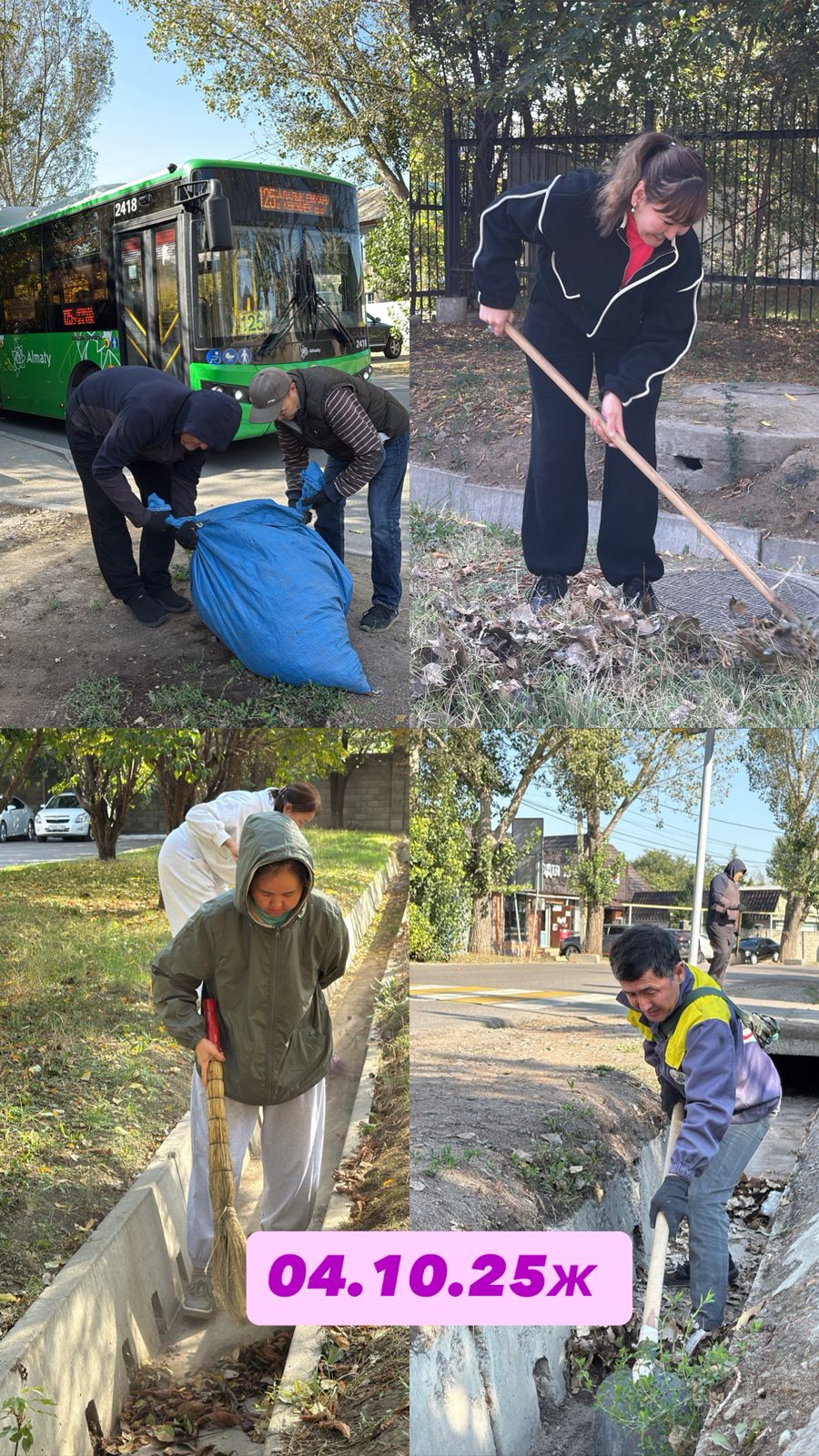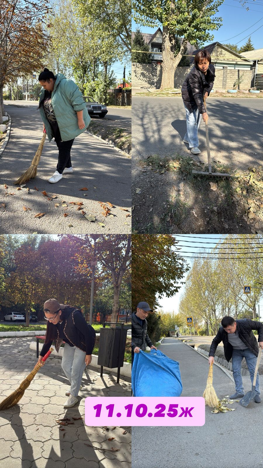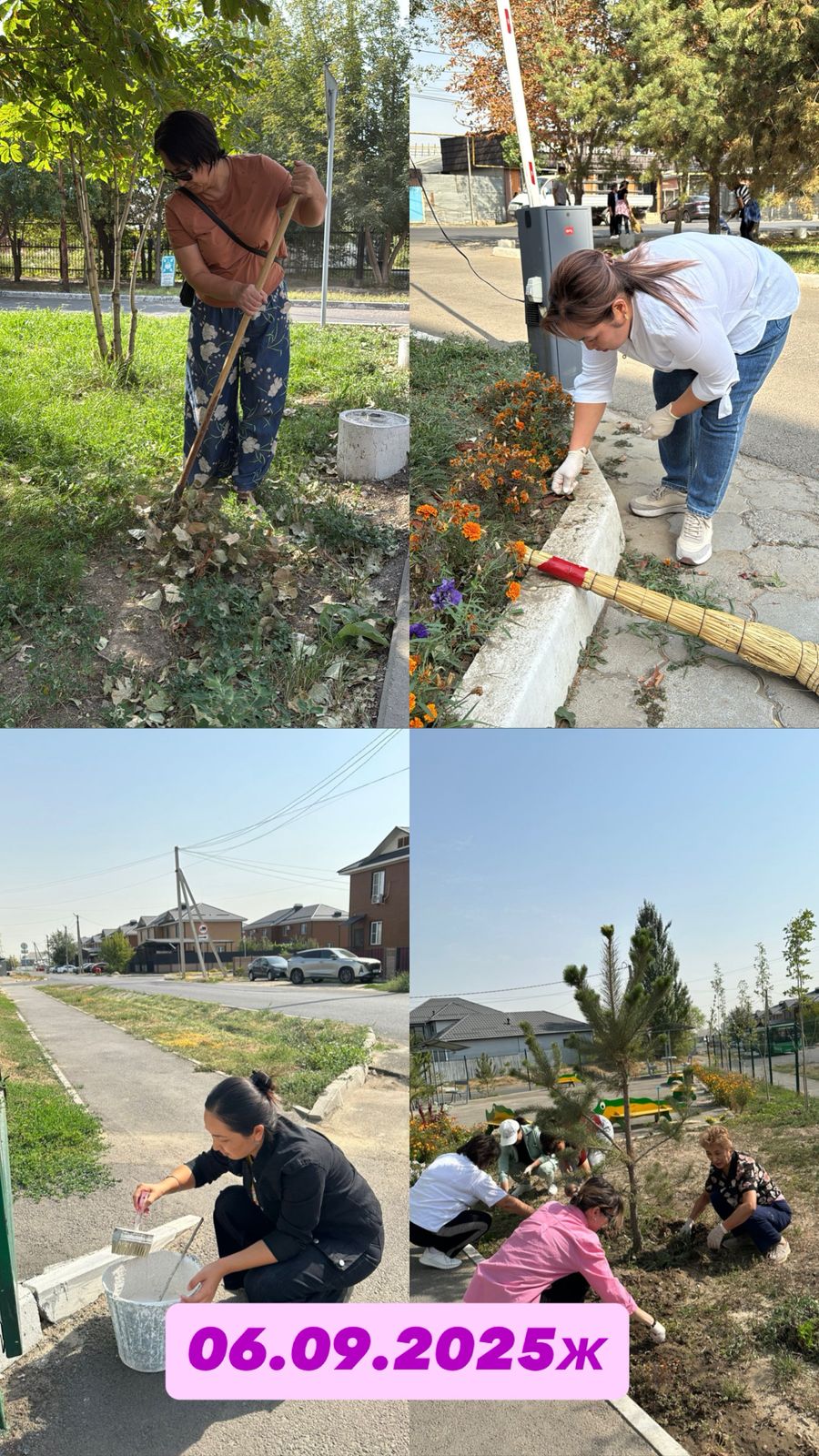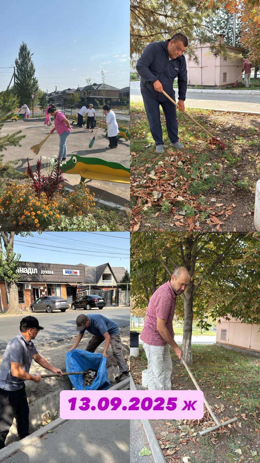 На экологической акции "Таза Қазақстан" наша команда каждую субботу систематически проводит уборку дворов.