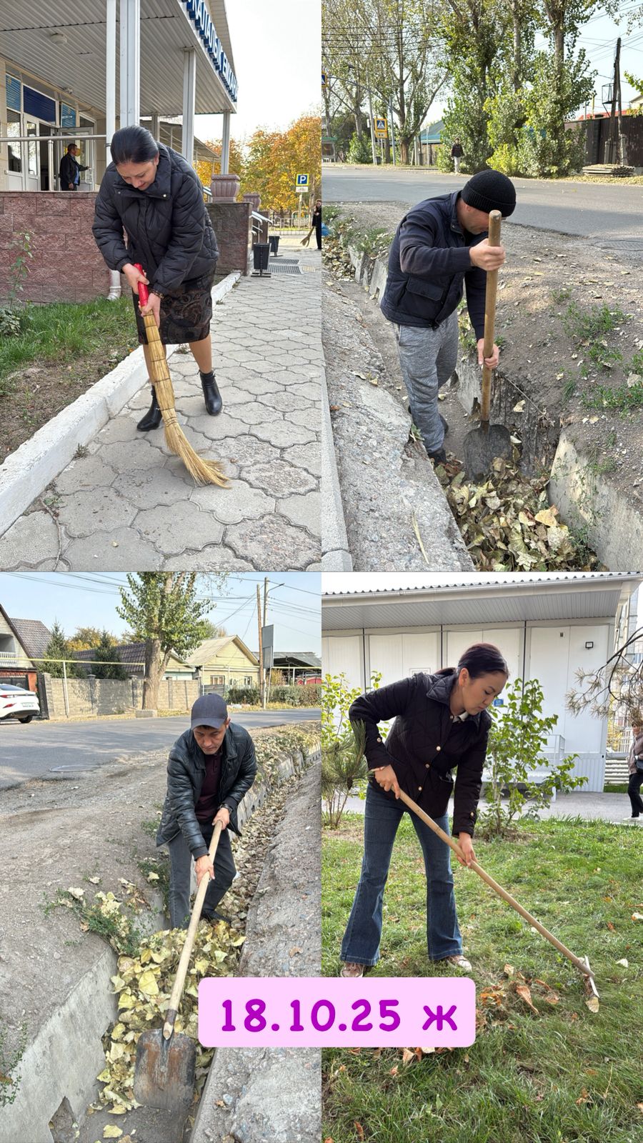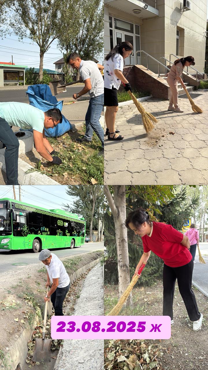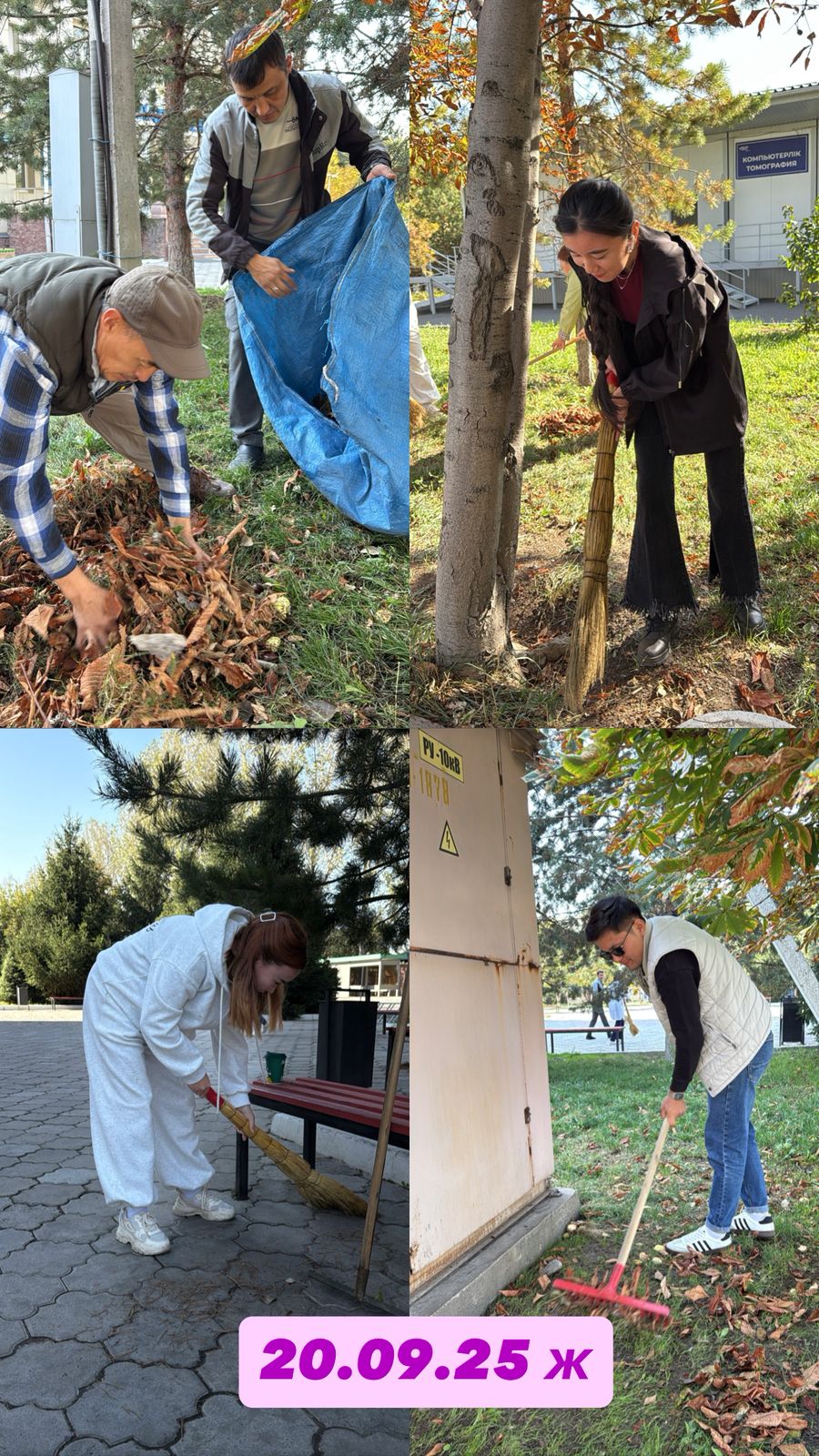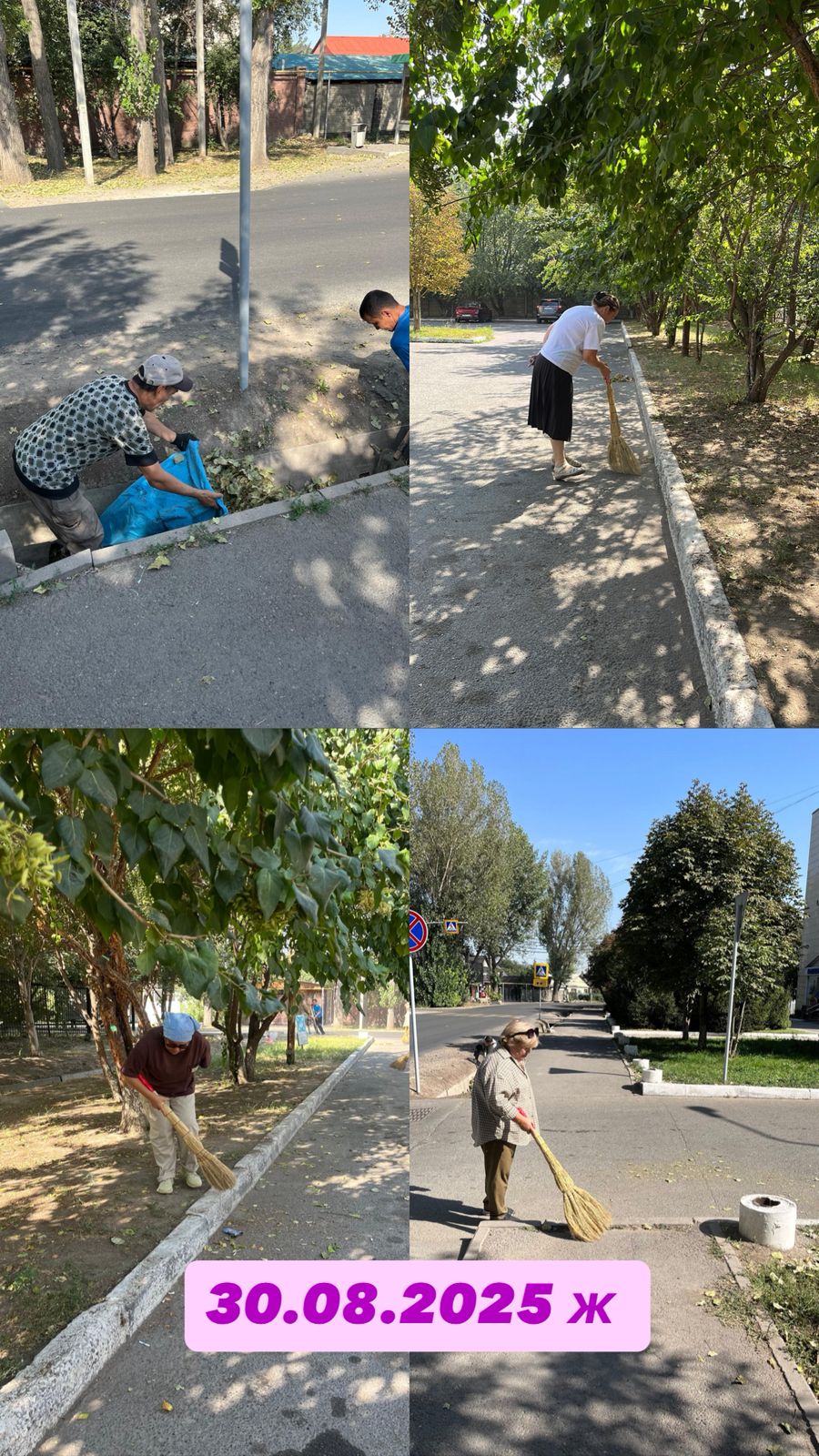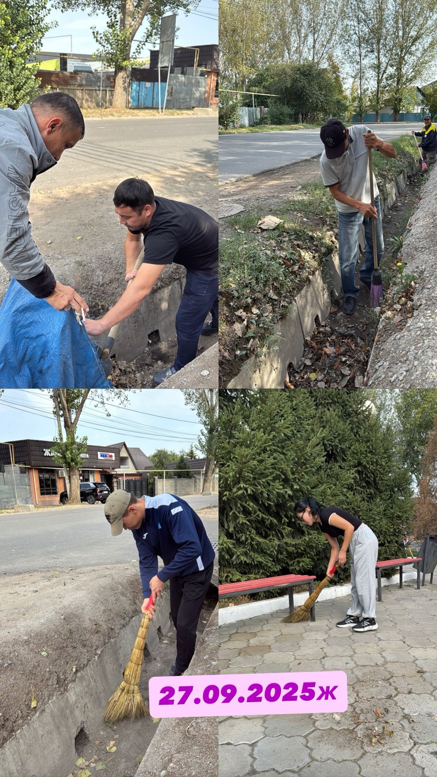 На экологической акции "Таза Қазақстан" наша команда каждую субботу систематически проводит уборку дворов.